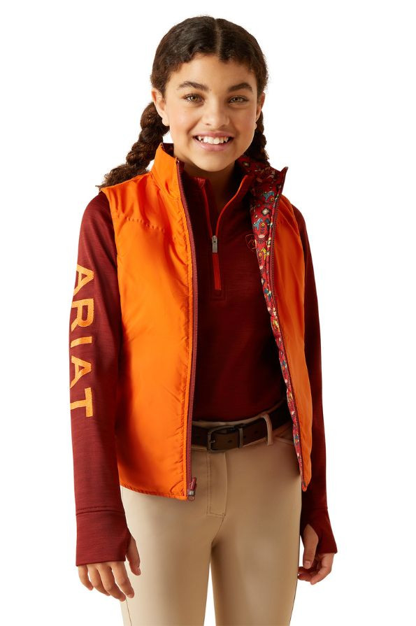 The Bella Reversible Vest is constructed with AriatTEK®, which is designed to keep your child comfortable in any weather. It features the Earth-friendly EcoDry™ water-resistant finish, making it wind and water-resistant with excellent breathability. The standing collar provides extra protection against the wind and the hand pockets offer ample storage and warmth for their hands. Available in Dala Horse/Arctic.