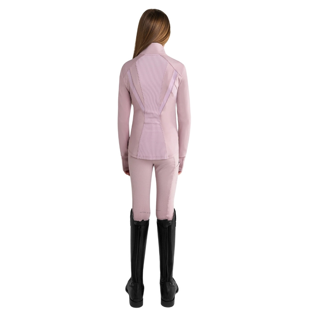The Aztec Diamond Young Rider Fitted Jacket in Pink is a sophisticated technical layer designed for high performance equestrian activity. This technical fitted long sleeve jacket is expertly crafted from premium recycled fabric which reflects a commitment to sustainable style without compromising on quality. The design features a high neck zip style that provides a streamlined look while offering protection against the elements during training. To ensure the rider remains comfortable during intense exercise the jacket incorporates a back mesh panel for superior ventilation and breathable air flow throughout the garment.