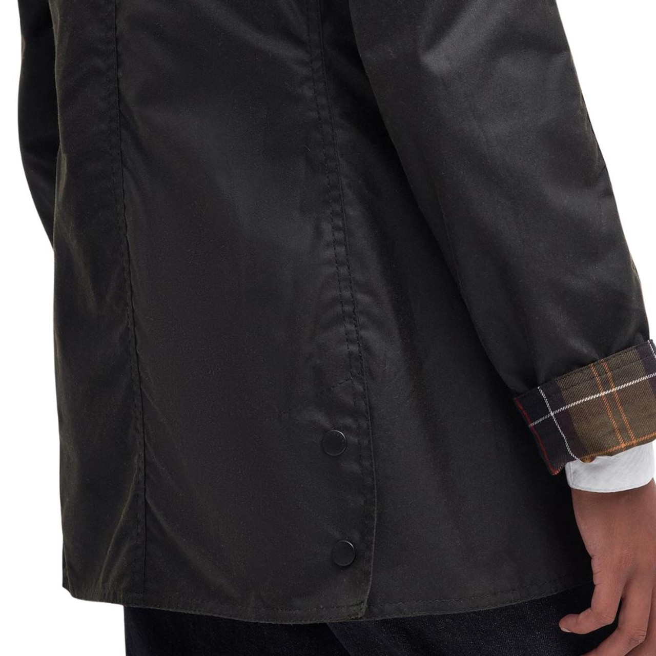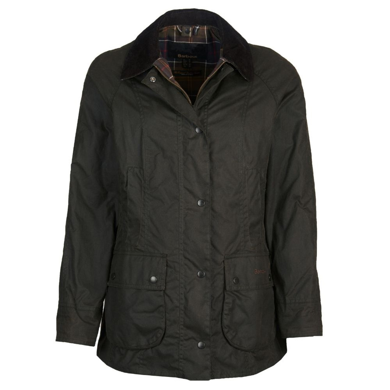 The flattering and feminine Classic Beadnell Wax Jacket will be your go to staple for all seasons. Crafted with a sylkoil wax outer, the traditional sit-down corduroy collar and tartan lining ensures the wax will never go out of fashion. With an array of pockets for keeping essentials to hand you will be prepared for any adventure when walking in the countryside. Available in Olive for a classic country look. View more waxed jackets in the jackets and coats range.