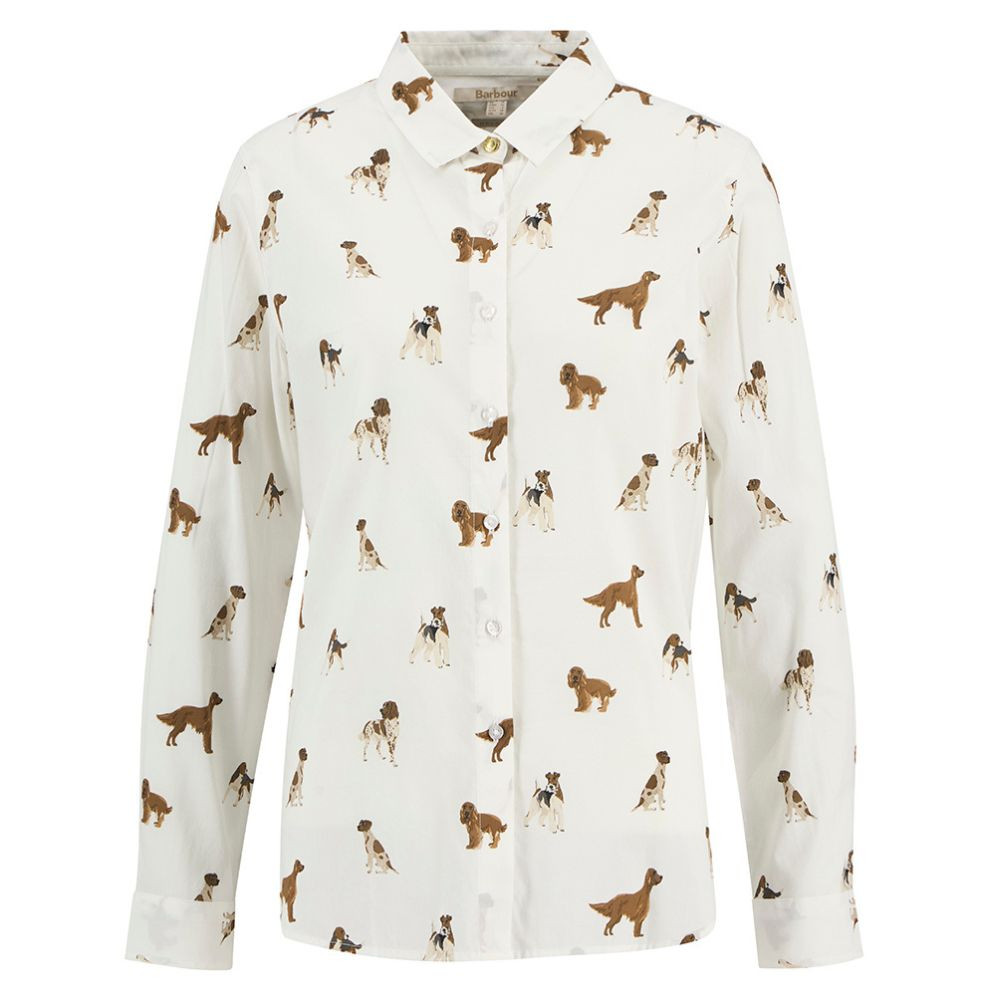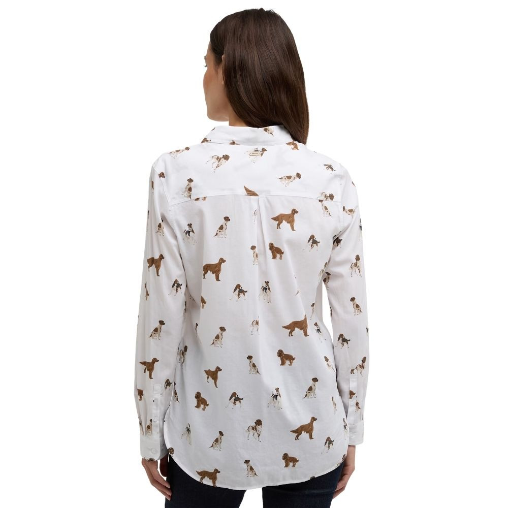 The Barbour Ladies Safari Shirt in Multi Dog Print is a relaxed fit style with an all over playful dog design. Featuring a feminine curved hem, branded double button cuffs, and an ID bar at the back neck, it combines everyday comfort with signature Barbour detailing. View the shirts range for more styles and colours.