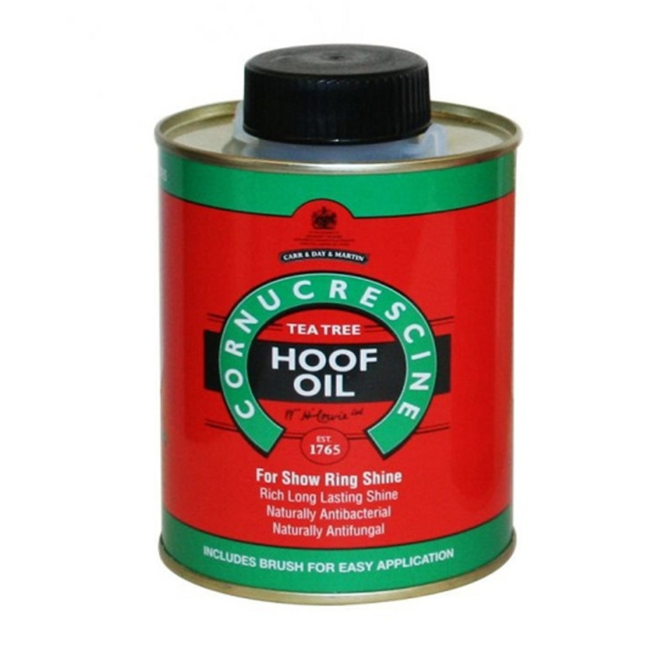 An alternate to traditional style oils, the Carr Day Martin Cornucrescine Tea Tree Hoof Oil maintains and protects the hoof, leaving a lasting shine. This rich oil is suitable for all hoof colours and contains tea tree oil for its antibacterial which has antifungal properties. Apply to the entire hoof for great shine and long lasting protection. For damaged hooves, use in conjunction with Cornucrescine Original Hoof Ointment to accelerate hoof growth and aid restructuring.