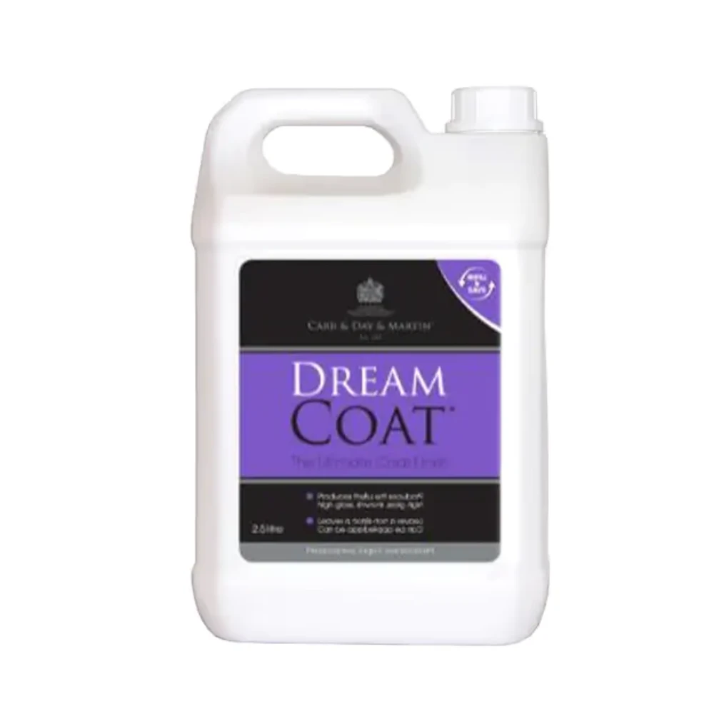 Get that award-winning glow with the Carr & Day & Martin Dreamcoat. The unique non-slip formula produces the ultimate high gloss, defining your horse’s features and muscles, and can even be used on the saddle patch for extra grip without leaving a greasy residue. Spray onto your horse’s coat or on manes and tail before plaiting to outshine your competition. Available in 500ml, 1 Litre or 2.5 Litre.