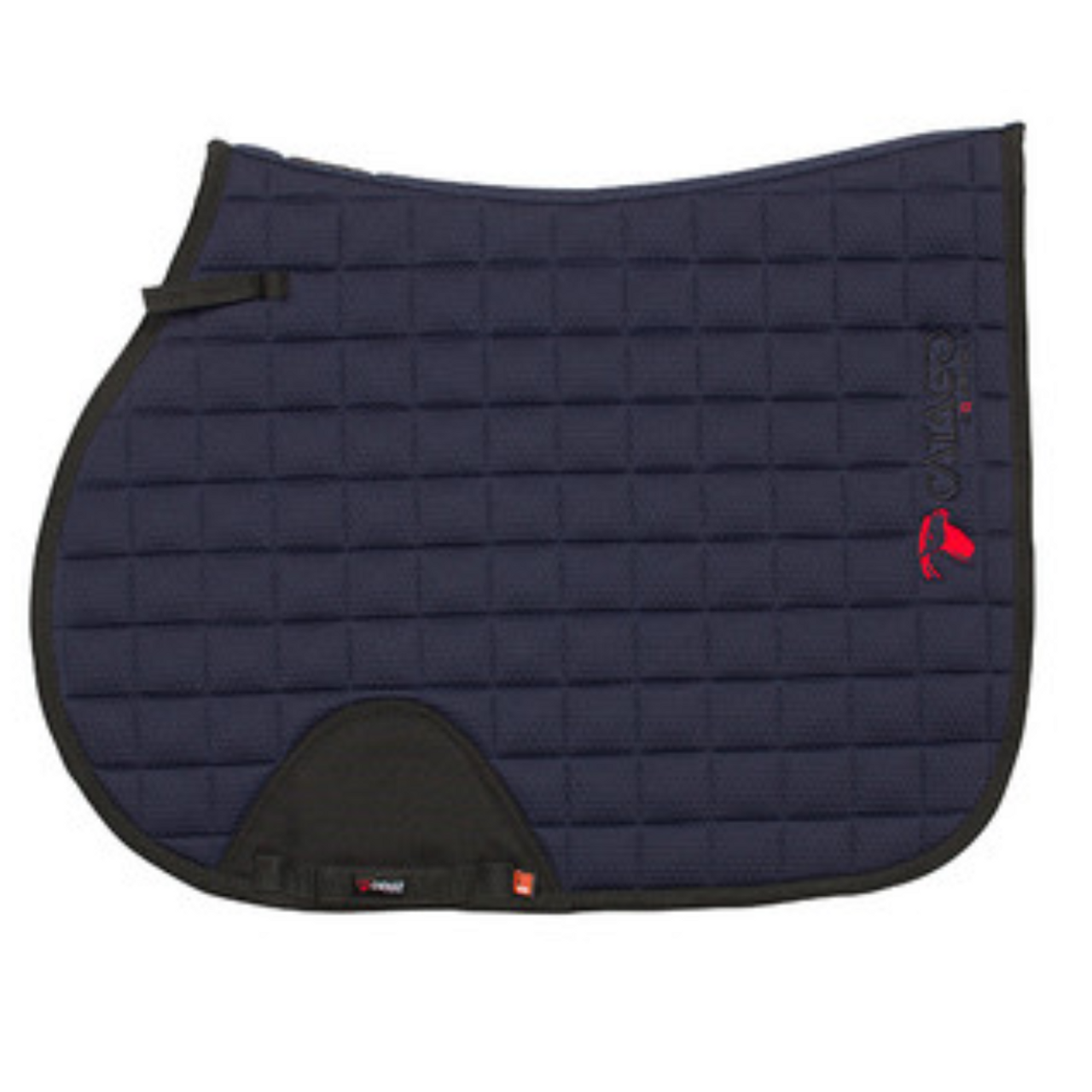 Support your horse’s wellbeing and performance as you ride with the Catago FIR-Tech General Purpose Saddle Pad. This innovative therapy saddle pad features FIR Technology fabric with ceramic particles to convert your horse’s body heat into infrared heat radiation. This radiation penetrates the tissue and widens the blood vessels to increase the suppleness of the back musculature. Finished with synthermax fiberfill for effective insulation, this saddle is a must have for any collection. Available in Black or Navy.