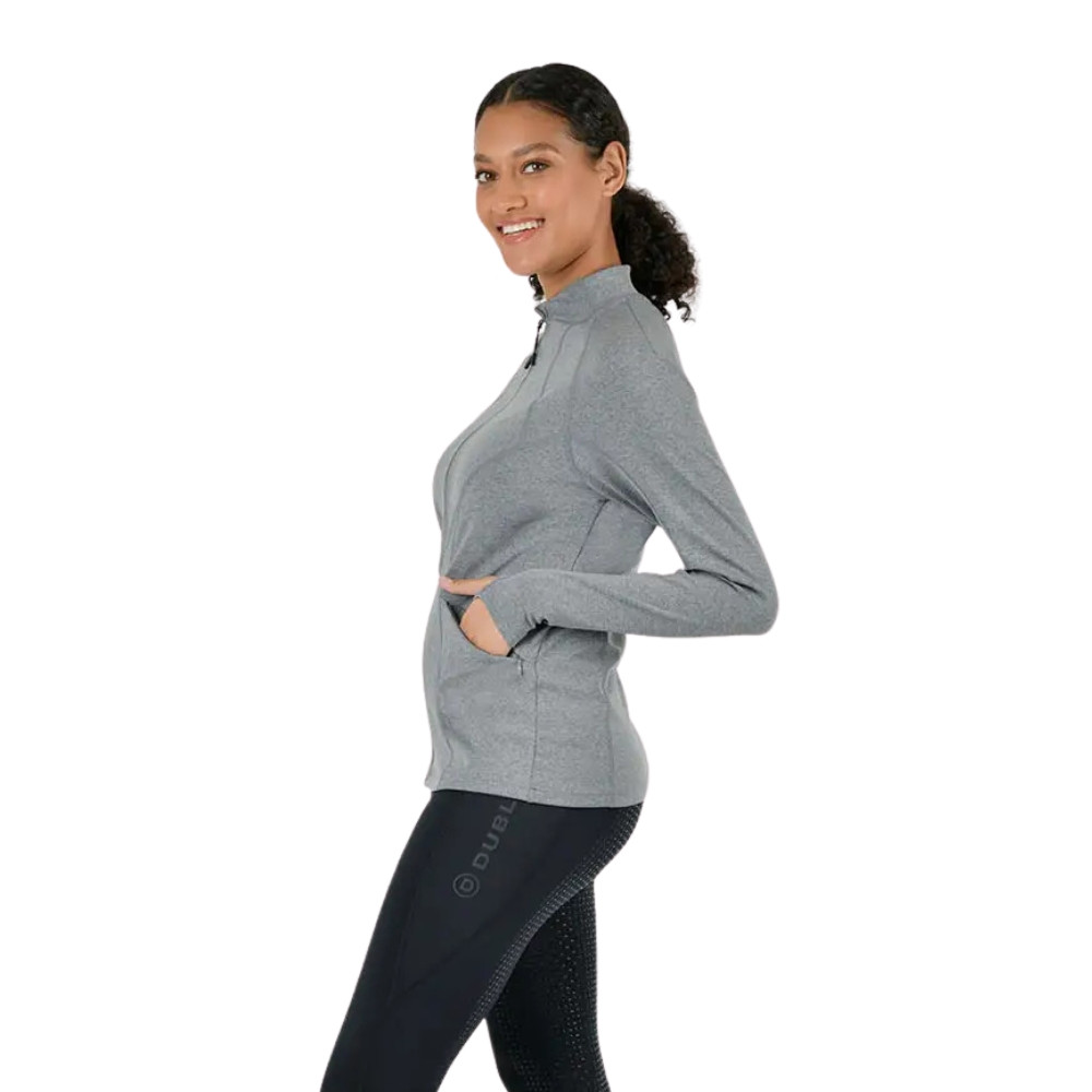 A perfect sporty full zip jacket to add a layer of warmth on those cooler days. The Dublin Ladies Reese Jacket has contouring stitching for a flattering finish. This technical jacket has Comfort Dry Technology to help moisture dry quickly, keeping you dry and comfortable. Finished with invisible pockets and subtle Dublin branding on the chest.