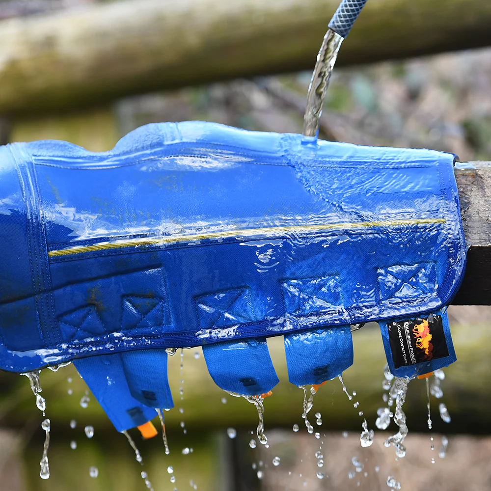 When it comes to mud fever, prevention is better than cure. The Equilibrium Equi-Chaps Close Contact Chaps fit like a second skin to afford your horse fantastic proception while turned out. These chaps completely encase the lower leg to shield your horse’s fetlock, hoof and heel. The perforated neoprene outer is soft and breathable for increased airflow and a comfortable fit. Finished with handy grip tabs for easy fitting and removal, you’ll be reaching for these chaps time and time again. Available in Navy/Yellow Stripe.