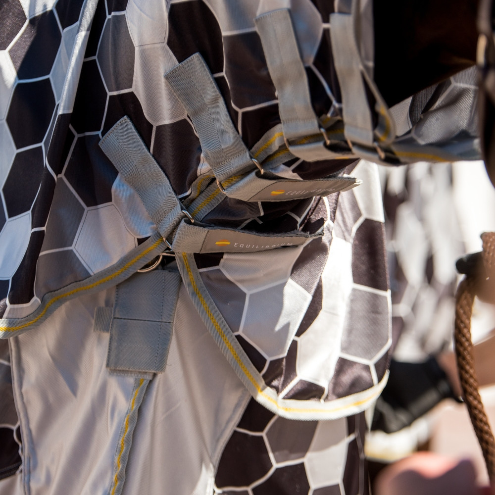 The mesh of the rug is designed to be closed enough to restrict biting insects, but open enough to keep the horse cool when the temperatures are warmer. Finally, the material protects against the sun’s harmful rays, offering 77% UVA and 90% UVB protection.
