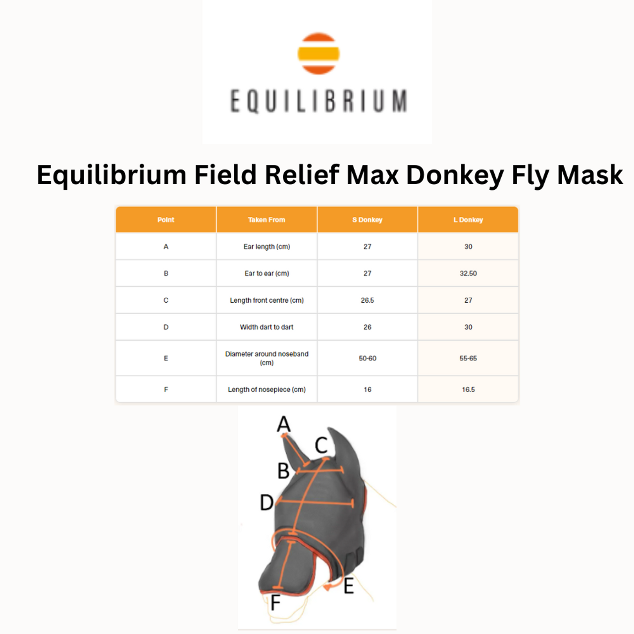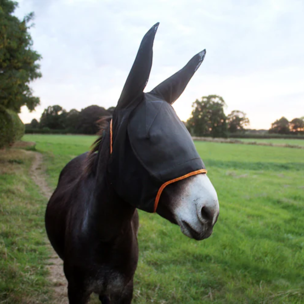 Equilibrium's Field Relief Fly Max Donkey Fly Mask is perfect for ensuring maximum protection and comfort for your four-legged friend. It offers full face coverage and over 70% protection from harmful UV rays to protect their delicate features. The padded nose and brow ensure extra comfort, and the eye darts allow ample clearance. This mask also features donkey-shaped ears, providing extra room and comfort. A detachable nose piece enables you to tailor the mask to suit your donkey's need - affording additional protection for those with pinked skin. Finishing touches include adjustable fastenings and elasticated bindings for a secure fit. Available in Black.