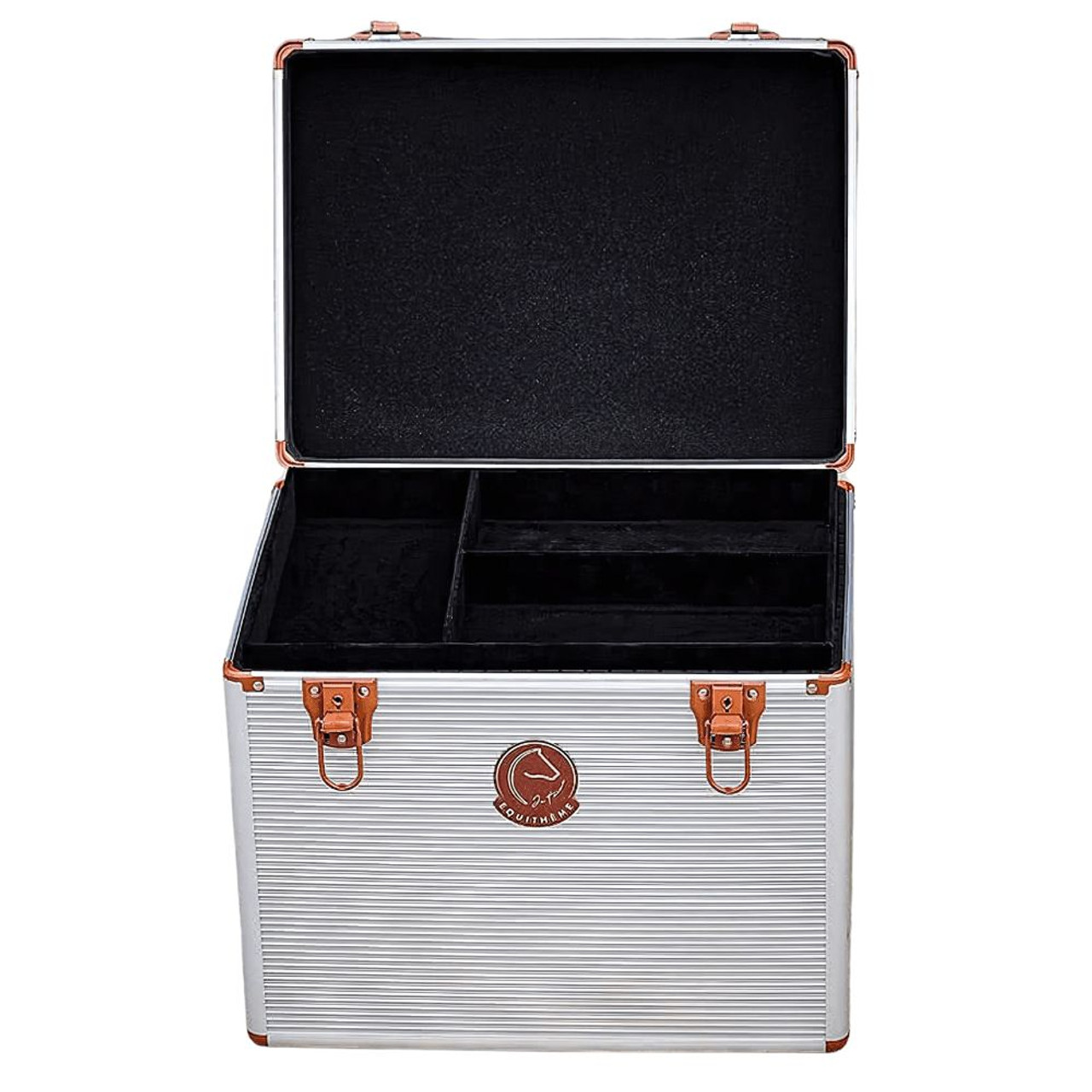A stylish grooming box from the I Love You range for organising all your horse essentials. Made from aluminium for long lasting durability. The box includes a tray and adjustable dividers for personalised storage. The box has two key locks for added security.