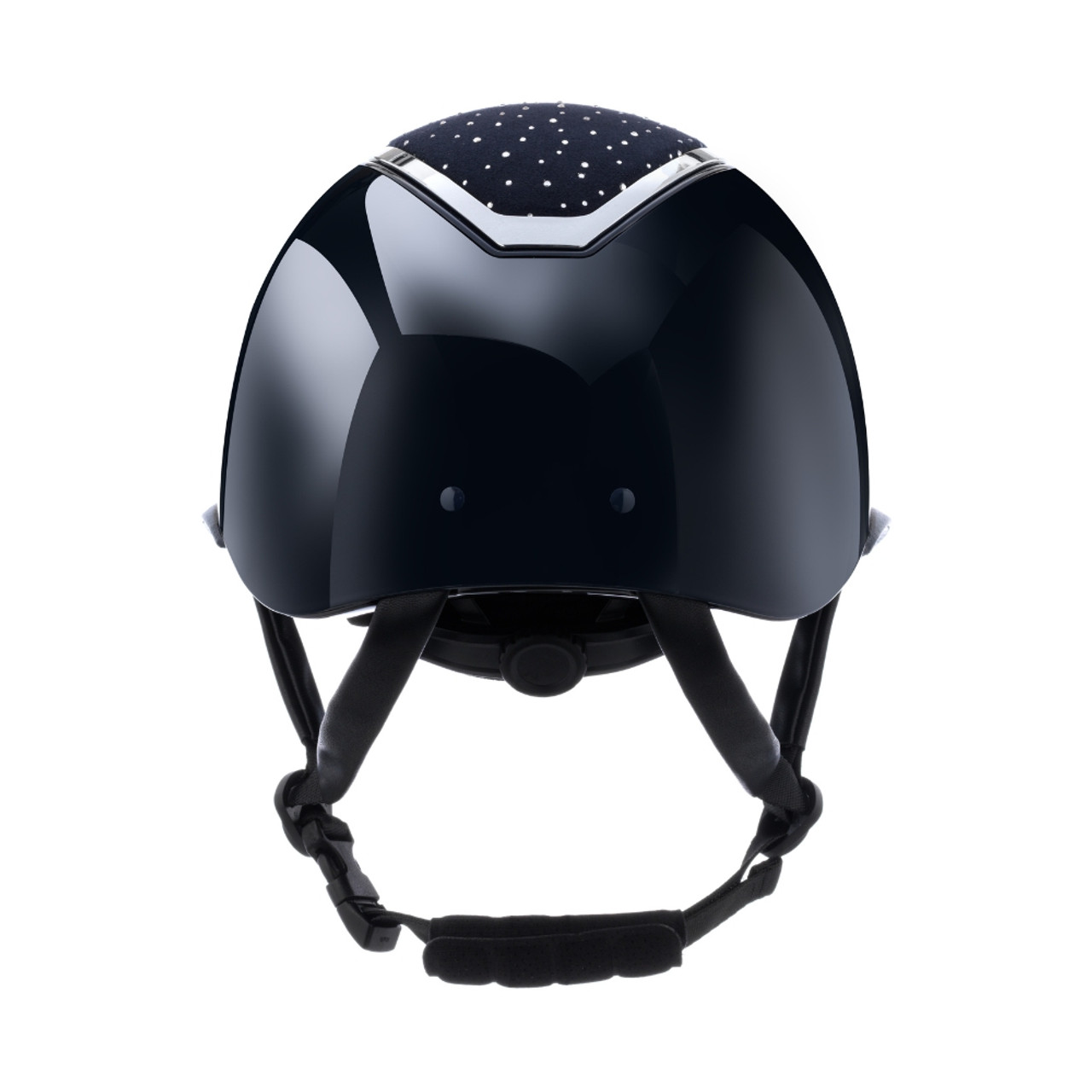 The EQx Kylo In Wide Peak is a new pioneering dial-fit helmet from EQx by Charles Owen. Showing style, quality, and comfort with an easy-to-fit precision dial-fit system. Features a wide flexible peak which is great for the summer months to help visibility, and Extensive ventilation that maximizes cooling matched with the wicking fabric machine washable removable headband this helmet will keep you comfortable. The Kylo is lovely and lightweight with a flattering fully adjustable leather look harness that features a quick-release buckle along with featuring three international safety standards. Now available in the new season colours, Black Matte/Silver, Navy Matte/Rose Gold, Black Gloss/Chrome & Navy Gloss/Silver.