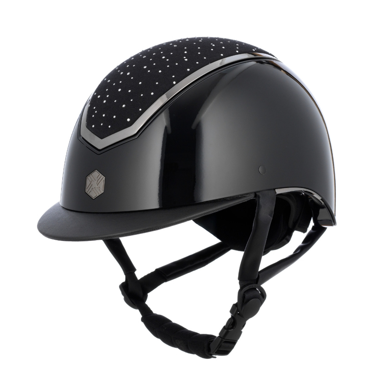 Certified to three international safety standards and available in a flexible standard peak. The Kylo is lovely and lightweight with a flattering fully adjustable leather look harness that features a quick-release buckle. Now available the new season colours, Black Matte/Silver, Navy Matte/Rose Gold, Black Gloss/Chrome & Navy Gloss/Silver.