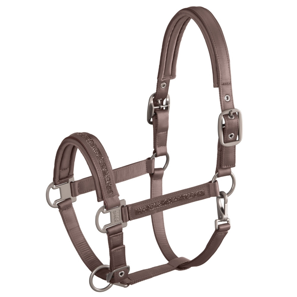 A true masterpiece that combines elegance with functionality. This headcollar is designed to turn heads with its noble mattgloss surface and dazzling jewel stones inserted at the noseband and cheekpieces. Crafted with tear-proof webbing inside, this headcollar offers exceptional durability and strength, ensuring your horse stays safe and secure. The soft padding at the nose and headpiece adds an extra layer of comfort, preventing any rubbing or discomfort during wear. The double pin buckles allow for optimal adjustment, ensuring the perfect fit for your horse. Additionally, the chin strap is adjustable, ensuring a secure and comfortable fit for horses of all sizes and shapes. Whether you're attending a show or simply want your horse to shine, this headcollar is sure to impress.