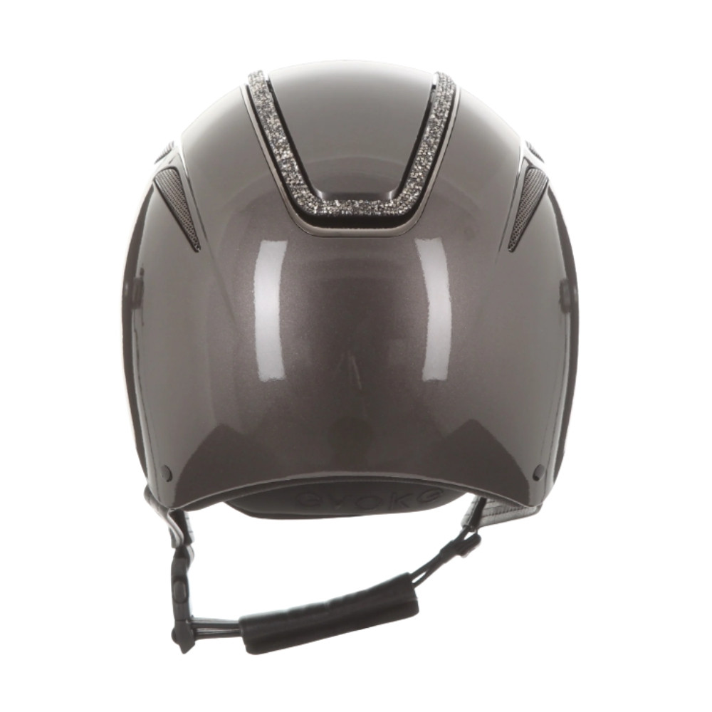 Sophisticated, modern, and crafted for performance, the Callisto Wide Peak riding helmet in Metallic Graphite brings effortless elegance to every ride. The sleek metallic graphite finish is beautifully complemented by a shimmering Marcasite Crystal frame, offering just the right touch of refined sparkle. The wide peak design enhances your silhouette while providing added sun protection, perfect for outdoor schooling or competition.