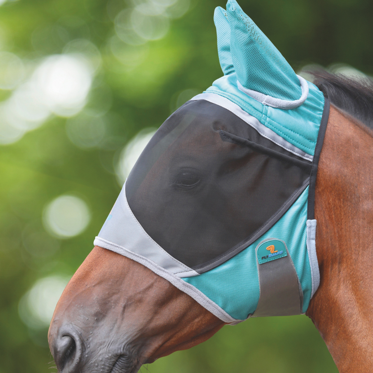Designed for horses with sensitive skin the breathable Shires Deluxe Fly Mask with Ears will keep annoying flies and insects at bay. The adjustable and comfortable fittings ensure this fine mesh mask keeps your horse comfortable when turned out. The fine mesh mask is lifted away from the face by fleece seam padding and reinforced darts. The airstream fabric covers the ears and the elastic over the poll provides a comfortable fit. Available in Green.