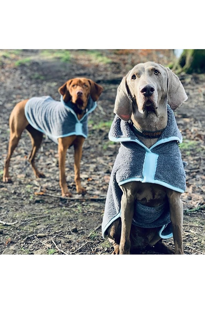 Designed for wet or muddy dogs, the Henry Wag Microfibre Drying Coat protects the boot of your car or indoor furnishings whilst they dry off. Perfect after a rainy walk, swimming or bathing; this smart looking dog coat is made from a microfibre towelling, which absorbs moisture whilst keeping your dog insulated. A belly strap helps to keep it in place whilst an extended collar ensures you have the option for enhanced coverage to the neck, or roll over for a turned out look. Available in Grey/Blue.