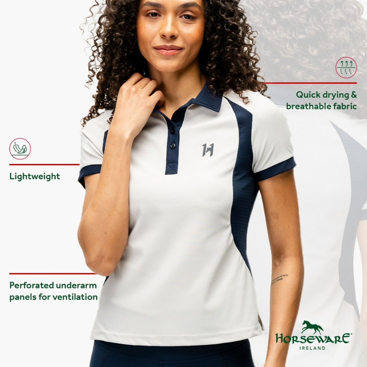The Horseware Ladies Vital Polo is ideal for everyday wear. Featuring a soft four-way stretch fabric and perforated underarm panels for ventilation and added breathability, the Vital polo ensures you stay cool no matter which strenuous yard task you are faced with. The classic silhouette cut and contrast collar add a subtle finishing touch to this modern classic. Available in Horseware Grey