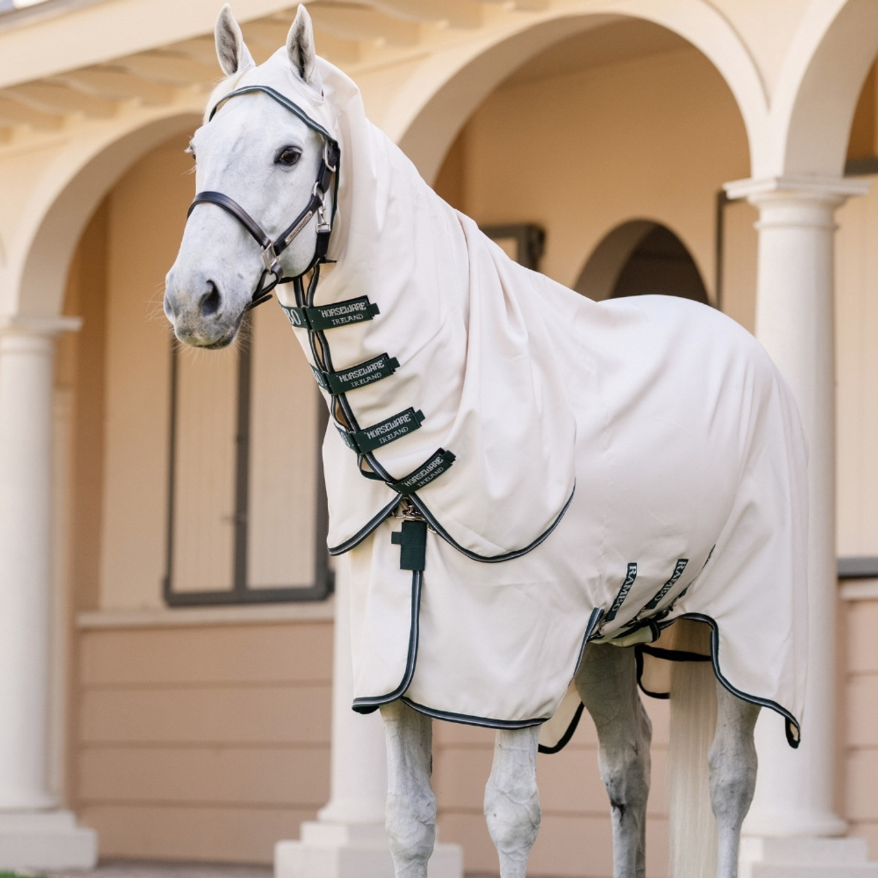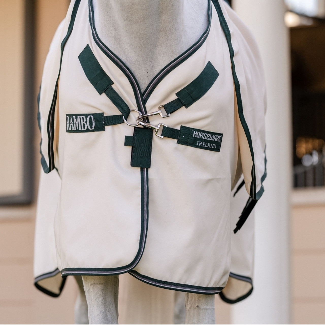 Head-to-tail protection and designed specifically for the bigger built horse. Made of a soft and very durable 1000D Polyester with close woven fabric so biting insects can’t get through. This super soft 90% UV protective lightweight layer defends against the smallest of flies. 20% deeper cut neck, delivering that much-needed additional room for shoulder movement and 10% more depth to cover your horse's larger body frame.