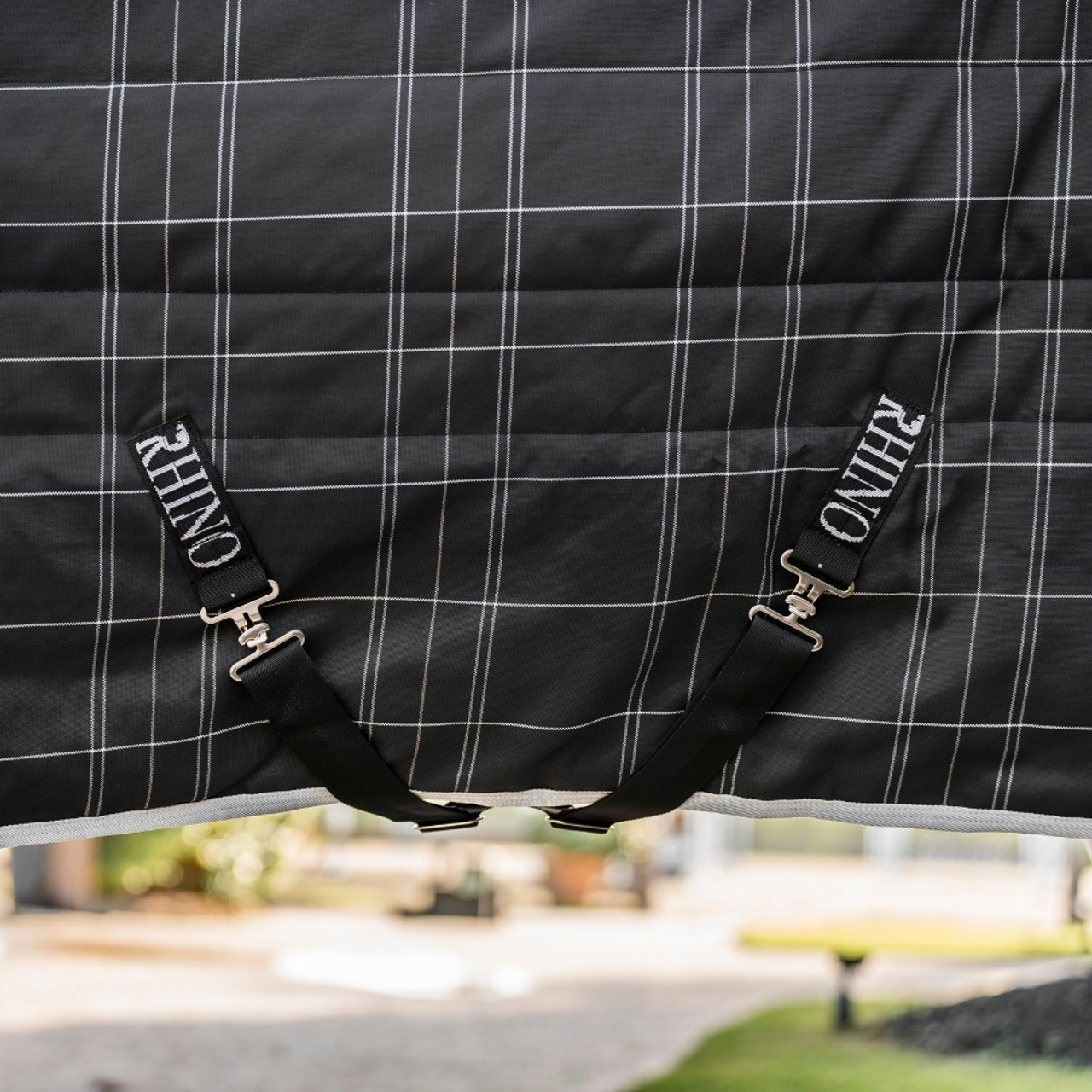 The Horseware Rhino Original Vari Layer Stable Rug 250g combines quality fabrics with innovative technology for a stable rug both you and your horse will love. Delivering maximum heat retention through the use of a unique Thermobonded fibrefill made from 80% recycled material, Vari-Layer reduces the weightiness found in traditional rugs making a rug with Vari-Layer technology easier to throw over and remove from your horse as well as Beng lighter on your horse’s body. The 1000D Polypropylene material is breathable, durable and extremely strong and the incorporated cosy fleece shawl collar with integrated cushioned wither pad lifts the rug to ensure it rests gently on your horse’s mane and wither area. Straight front closure and two adjustable crossed surcingles ensure the rug stays secure when your horse decides to lay down for a snooze or rolls in their fresh bed and a wipe clean tail cord make for easy cleaning where its needed most. Liner and hood compatible, the rug can be customised to suit your horse’s individual needs. Hood not included