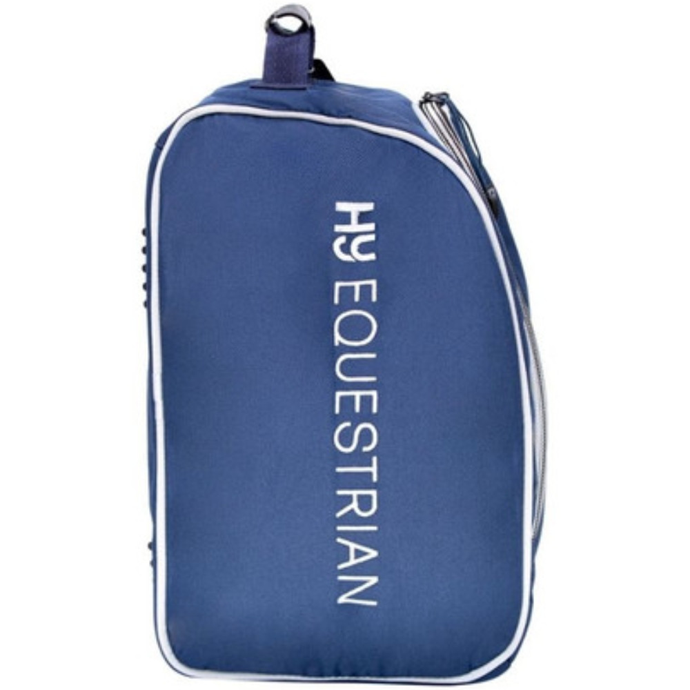 Durable Hy Equestrian branded helmet bag designed to help keep your essential riding hat clean, secure and protected from unnecessary knocks and damage. Lined to the inside, the bag is easily accessed via the duo zips with branded toggle pulls so you can easily get your helmet in and out. To the back, there’s hard wearing feet to stop the bag from sliding around if loosely stored and protect the bag when stowed. Easily carried via the durable handle and can be personalised with the name and address holder. Additional pocket to the outside ensures versatility. An ideal addition to your riding kit. Available in Navy/Grey