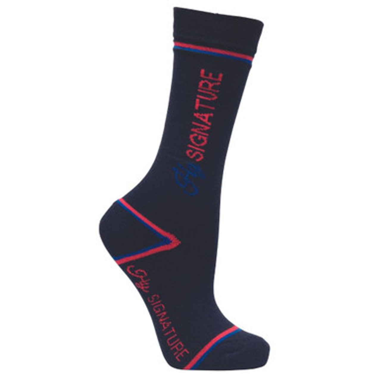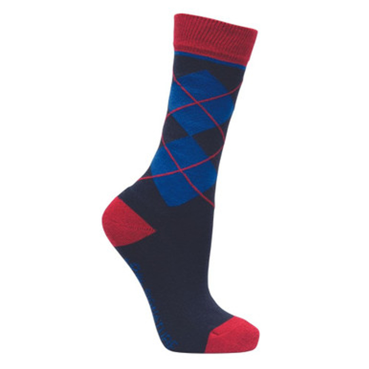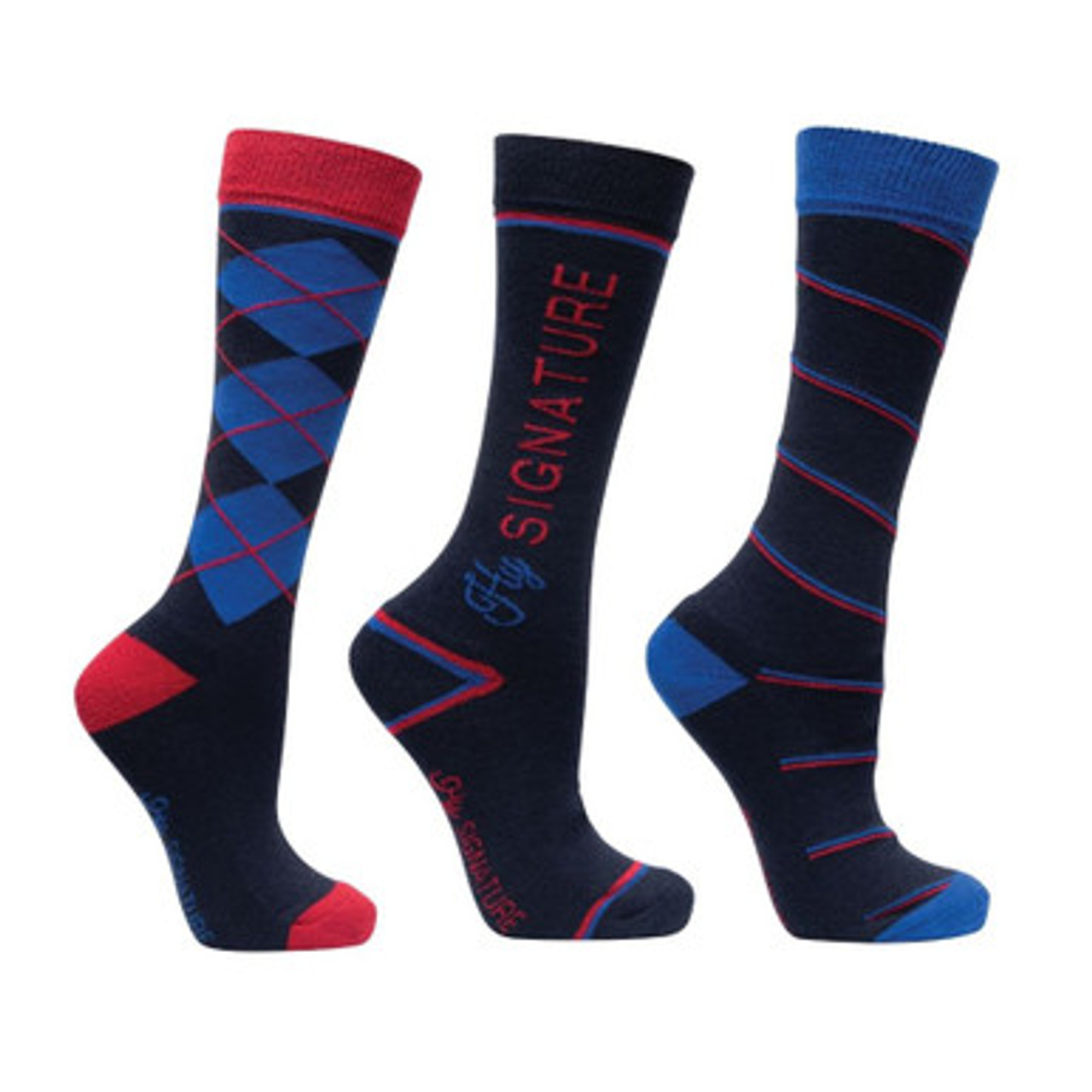 Complete your kids' equestrian wardrobe with our brand-new pack of Hy equestrian socks, designed to match the rest of the Hy Signature range. These socks offer advanced moisture-wicking properties thanks to the bamboo material, ensuring breathability and keeping little feet comfortable while riding. The socks also feature padding from heel to toe, providing support for junior feet in riding boots. Each pair of socks showcases a different pattern, including the classic argyle design on one pair. Available in Navy/Red.