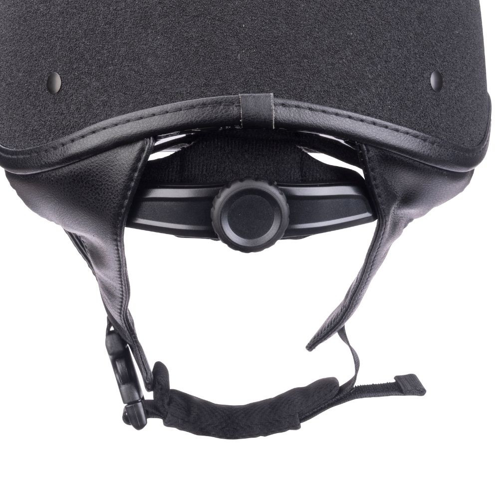 The Karben Icon ALX Jockey Skull provides top-notch safety and a bespoke-fit dial system for a perfect fit. The matte black Karben insignia and premium trim deliver a polished look. Front and rear air grills, combined with the 3D mesh liner, ensure optimal cooling for the head. A non-stretch webbing 4-point harness with an easy-to-use quick-release buckle offers secure and hassle-free fitting.