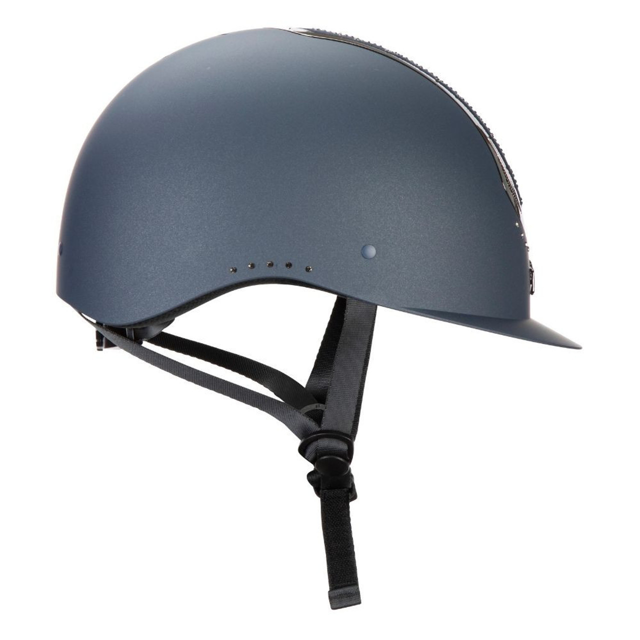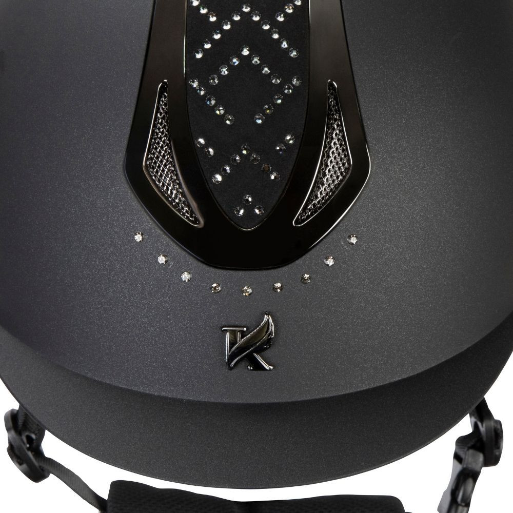 The Sonic riding hat range incorporates key Karben safety and comfort features for confidence when you ride. Reach new heights with the Sonic GXY Riding Hat, designed to stand out with sparkling diamantes at the crown and sides. Its smooth iridescent outer shell forms the base for a stylish and distinctive look. The gunmetal grey high-shine frame enhances the decorative crown, adding a touch of elegance. The TriVent Sonic Air system promotes airflow to reduce moisture and enhance comfort. The Karben bespoke fit dial allows for precise adjustments, ensuring a secure and safe fit. With numerous additional safety and comfort features, the Sonic GXY offers both style and peace of mind.