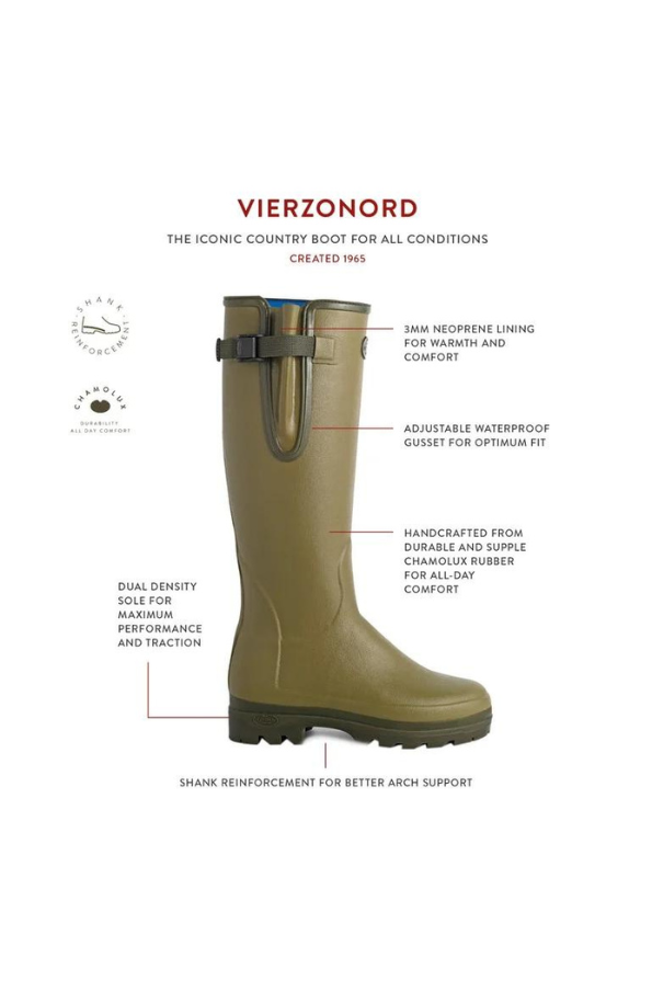 A favourite of The Princess of Wales, Kate Middleton; The Le Chameau Ladies Vierzonord Boots. These women's boots provide top-of-the-range insulation against the cold for superior comfort when out walking. They have an adjustable waterproof gusset and snap-fastening buckle design, which is exclusive to Le Chameau. This provides easy access into the boot as well as a secure fit around the calf.