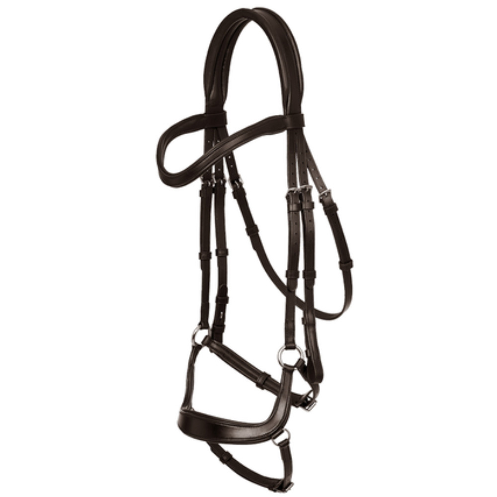 LeMieux's classic Arika Drop Bidle is anatomically shaped at the browband and noseband for even pressure distribution on sensitive areas, guaranteeing a secure and comfortable fit. The soft oiled leather is robust and is perfect for creating a sleek and professional look. Finishing touches include a D-ring that joins the noseband and cheek pieces so they sit smoothly against the horse. Available in a Black/Silver or Brown/Silver.