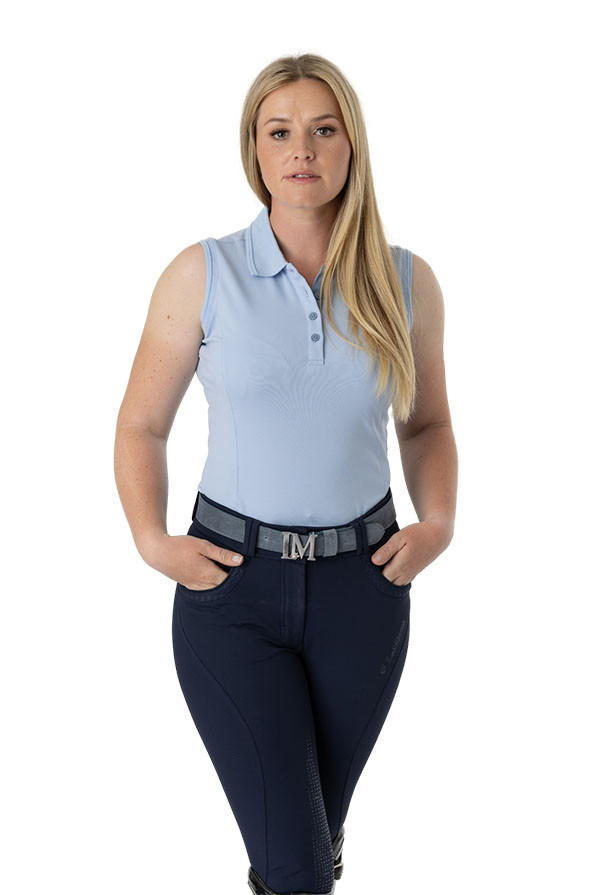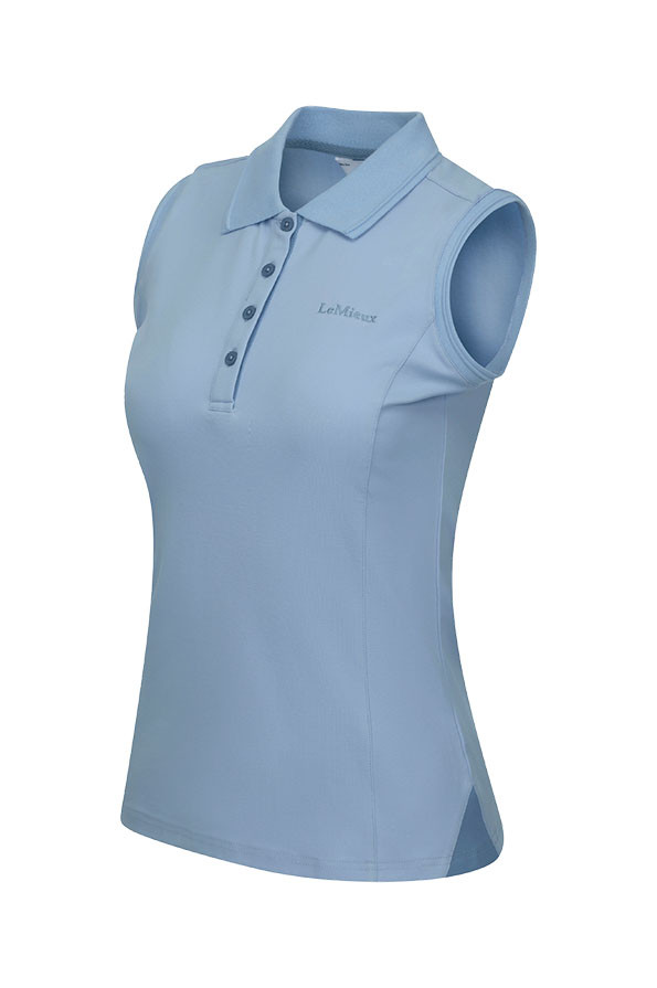 Stay cool and stylish this summer in LeMieux's Sleeveless Polo Shirt! The beautiful soft fabric has a touch of stretch for a full range of movement and a flattering fit, ensuring you always look and feel your best. Subtle contrast detailing adds a modern twist, while the three-button placket makes for the perfect finishing touch. Pair with the LeMieux Collection for the ultimate riding look! Available in Denim.
