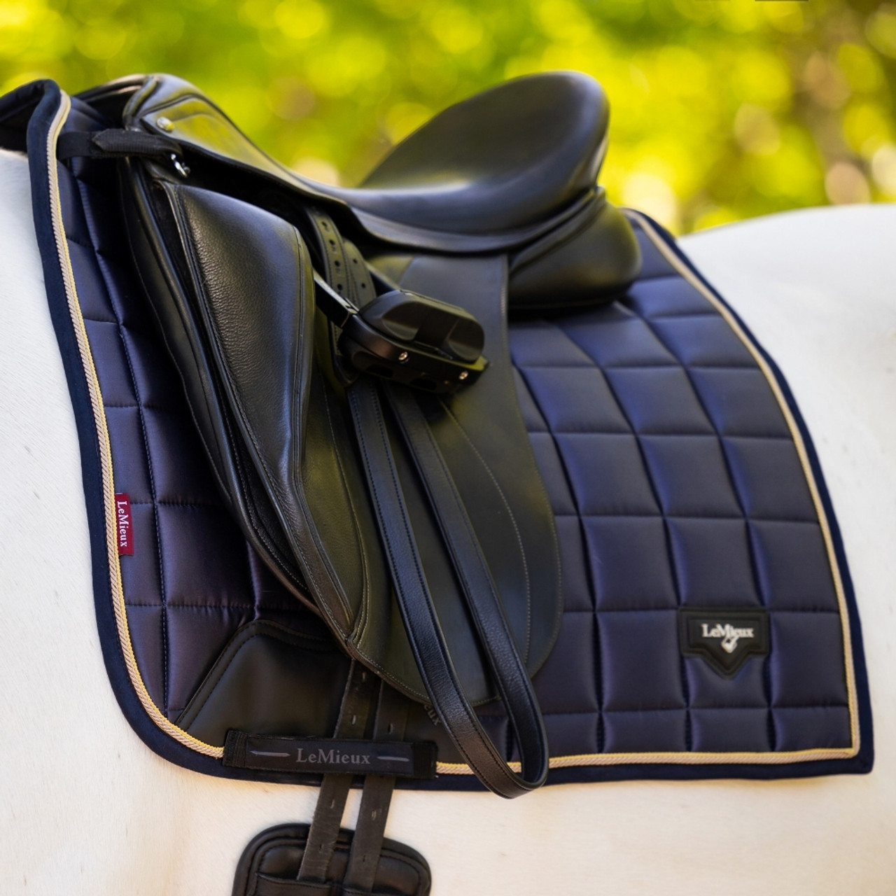 As one of the most stylish saddle pads LeMieux has ever produced, the Loire Classic Dressage Square is a must for the modern rider! The stunning woven satin fabric gives a beautiful sheen for a sophisticated feel, while the breathable bamboo lining enhances breathability and wicks away sweat for optimal moisture and temperature control. A soft suede binding contours the outer edges to retain the pad's shape and ensures a friction-free riding experience, so your horse always looks and feels its best. Finishing touches include a textured PU leather girth area with an embossed LeMieux logo for additional protection.