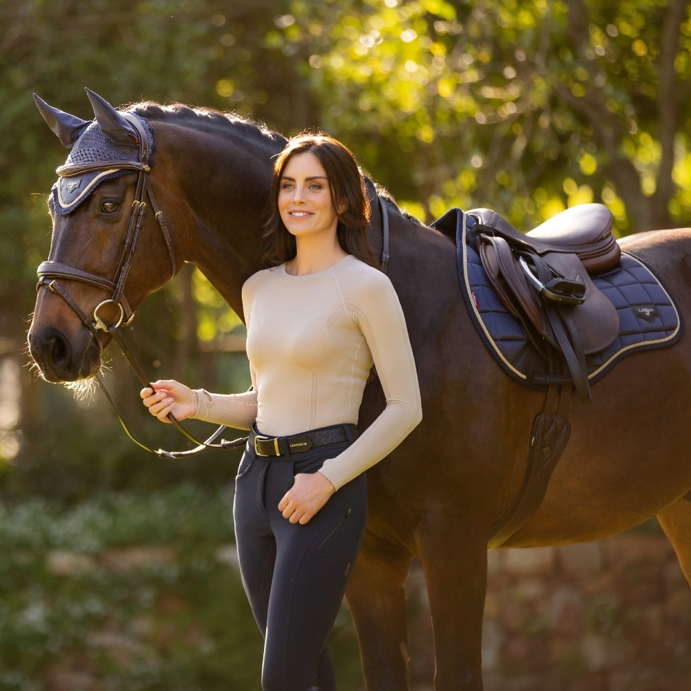 As one of the most stylish saddle pads LeMieux has ever produced, the Loire Classic GP Square is a must for the modern rider! The stunning woven satin fabric gives a beautiful sheen for a sophisticated feel, while the breathable bamboo lining enhances breathability and wicks away sweat for optimal moisture and temperature control. A soft suede binding contours the outer edges to retain the pad's shape and ensures a friction-free riding experience, so your horse always looks and feels its best. Finishing touches include a textured PU leather girth area with an embossed LeMieux logo for additional protection.