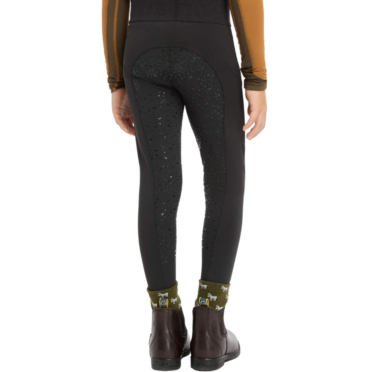 Easy pull-on style with a secure fit thanks to a wide elasticated waist band and a super cool fabric that wicks sweat away from the skin, keeping young riders comfortable and concentrating on the riding. The practical and comfortable design is continued at the tapered legs, avoiding bunching in boots and feeling comfortable without riding up.