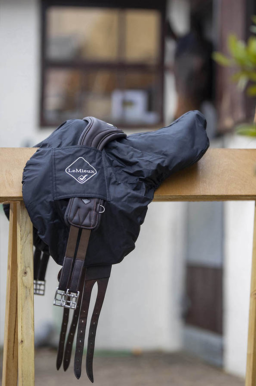 Designed to be durable and hardwearing, the LeMieux ProKit Saddle Cover is ideal for everyday use. The waterproof outer protects from water damage, while the soft fleece lining prevents unwanted scratches and scuffs. Achieving a secure and reliable fit over your saddle is easy with the adjustable drawstring, and the over-sleeve is perfect for keeping your saddle clean. Available in Black.