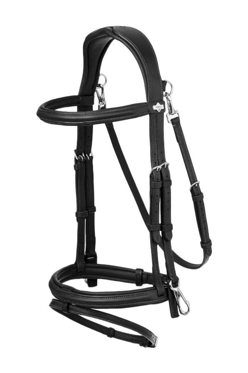 For everyday style and practicality, nothing beats the LeMieux Work Bridle! This gorgeous bridle features an anatomically shaped headpiece crafted with soft Europe leather for enhanced pressure distribution and maximum comfort. The removable flash on the raised padded noseband makes this bridle ideal for everyday use. Finishing touches include a clip on the cheekpieces so you can change your horse’s bit quickly and easily, and the throat lash clips onto D-rings on the headpiece, making it fully detachable. Available in Black or Brown.