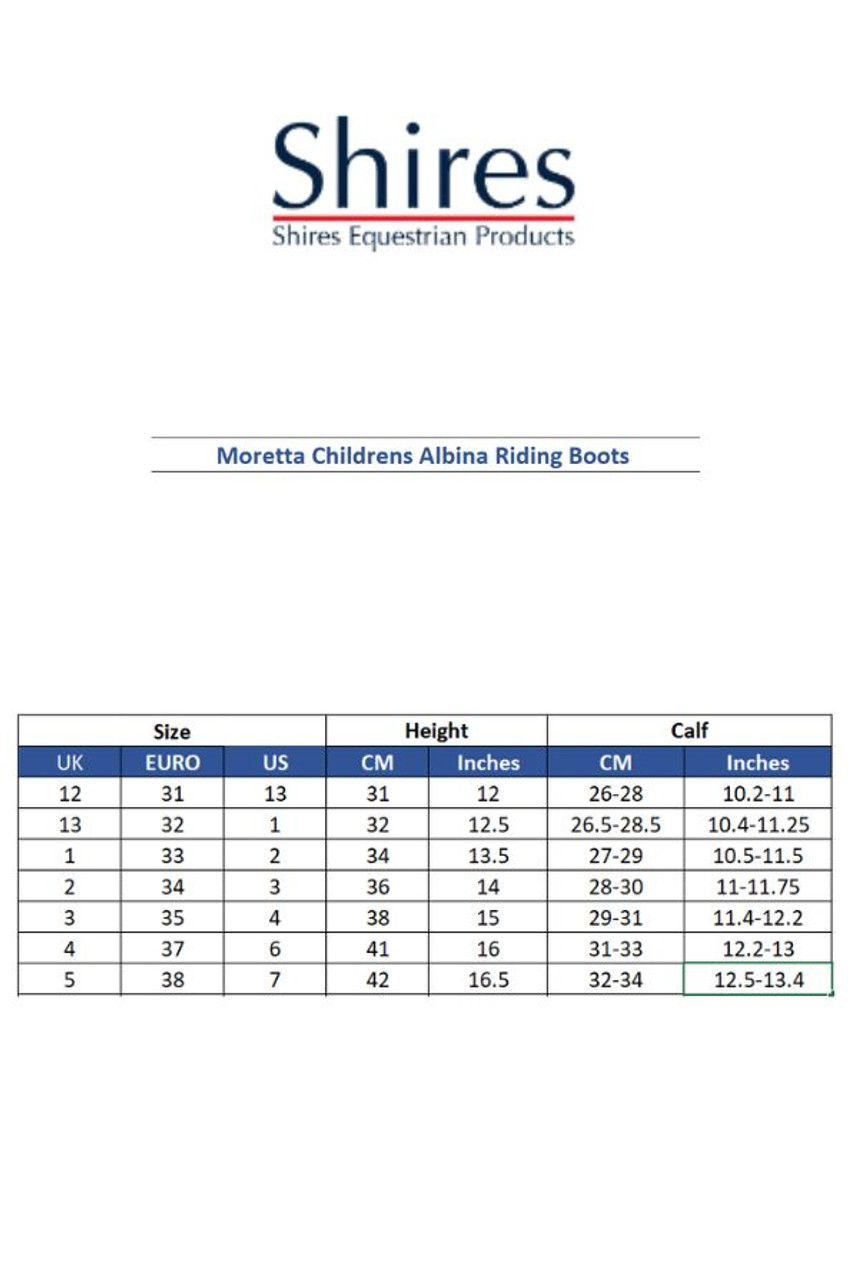 To ensure durability and support, the Moretta Children's Albina Riding Boots are equipped with shock-absorbing rubber soles and steel shanks. Available in Black.