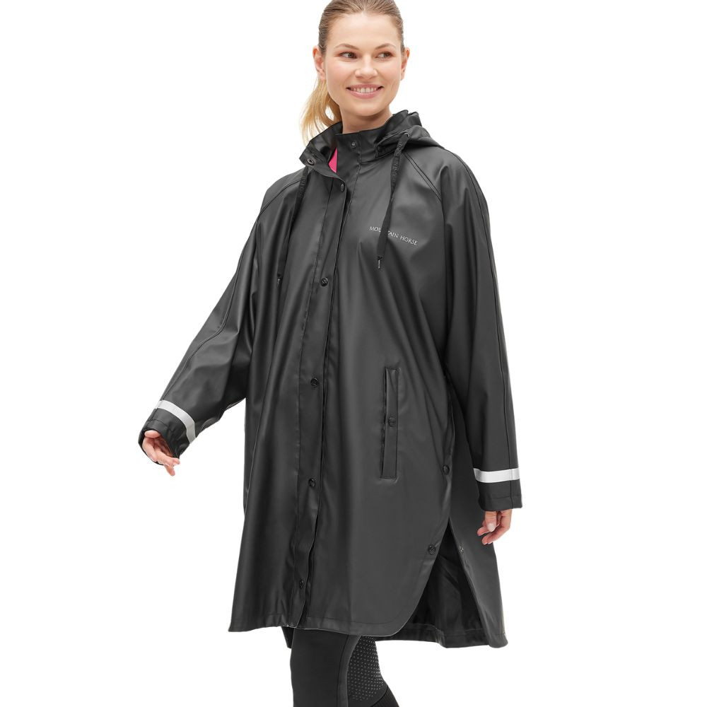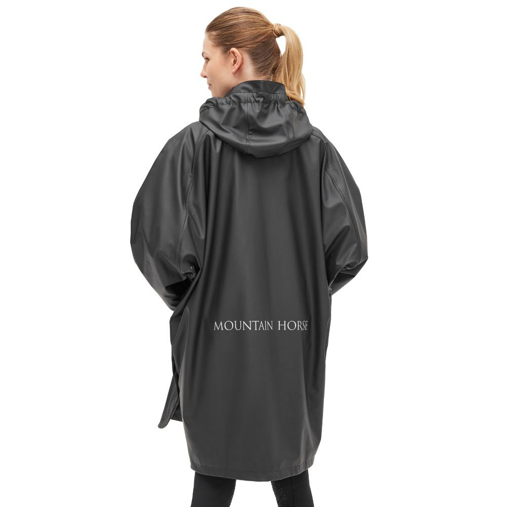 A must have for rainy days. The Drizzle Rain Poncho will protect against the elements, whilst giving freedom to move when riding and working on the yard. The waterproof PU fabric is crafted with welded seams and has vents at the side with snap closure. The poncho is fully lined and the protective collar comes with a detachable hood for greater protection. The reflective detailing to the cuffs and back helps improve visibly when in poor light conditions. Available in Black with a branded logo in white to the chest. View more rainproof clothing in the jackets and coats range.