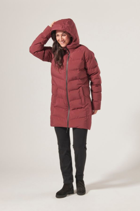 The Musto Marina Long Quilted Jackets offer exceptional warmth with high loft blowable fibre insulation. This women's quilted jacket is shower resistant, keeping you comfortable and dry in winter. It is fitted with an insulated hood that features adjustable cords for a secure fit for additional protection, a classic regular fit to add over layers, and a double zip fastening ideal for long outdoor autumnal walks. Available in Windsor Wine