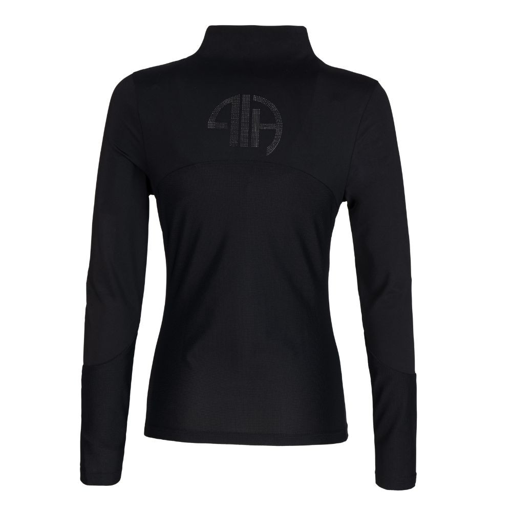 From Pikeur athleisure's range comes the stylish function jacket. Crafted with breathable, sweat absorbing perforation fabric for greater ventilation. The front, back and lower sleeves of the jacket have an opaque mesh, while the yoke and upper sleeves have a thin jersey fabric, all helping to create perfect temperature control. The jacket has 4 way stretch for ease of movement and the subtle side zips are great for keeping essential to hand when on the move. Available in black to go with any outfit choice. For more sporting jackets view the jackets and coats range.