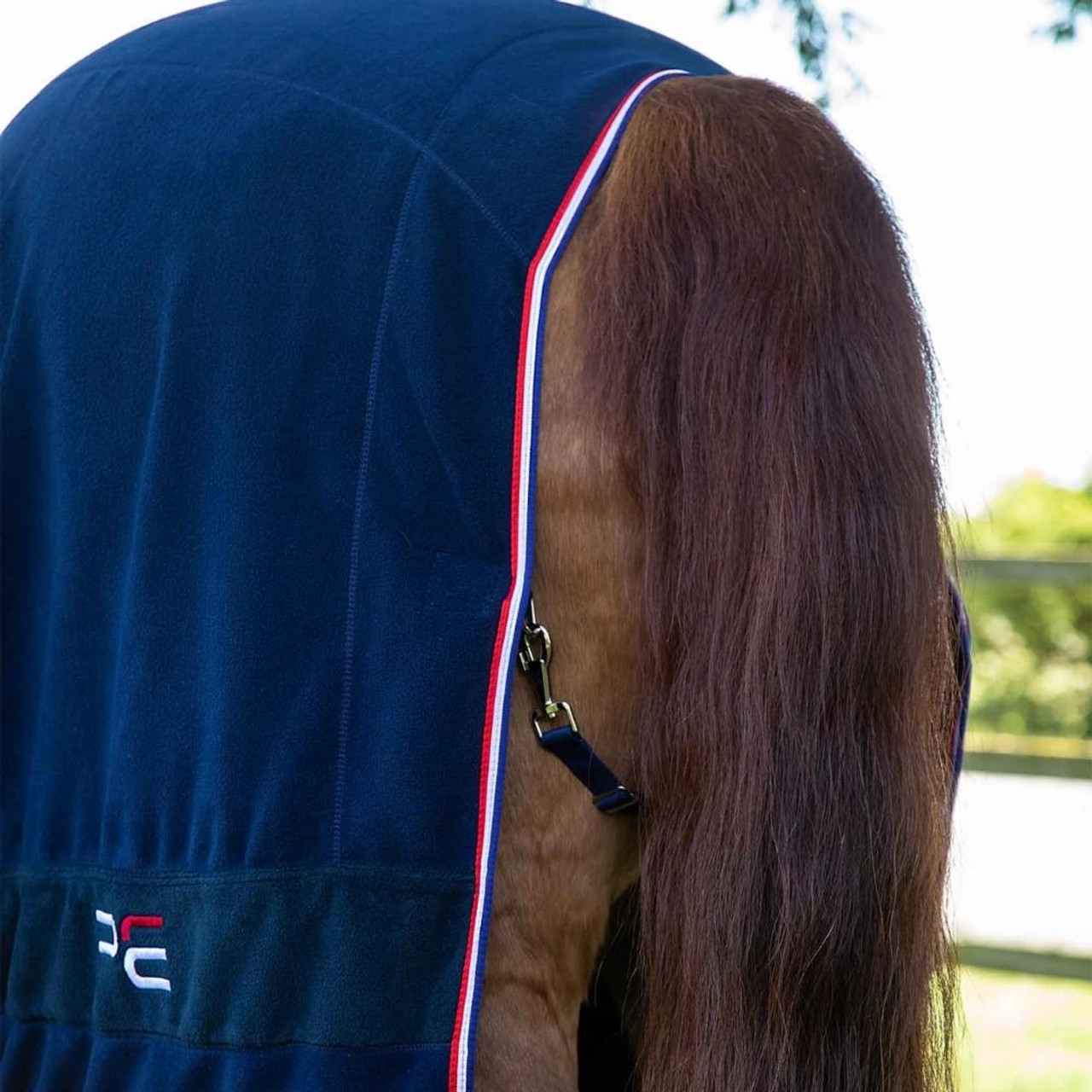 Premier Equine prioritise your horse's comfort with the rolled neckline, which alleviates pressure over the wither and prevents a tight, restrictive neckline. The visible seam lines are expertly crafted shaped panels, precisly cut to contour the body and provide the perfect fit. This eliminates the need for a centre back seam, ensuring maximum comfort and freedom of movement. Versatility is key with this Fleece Rug, as it serves multiple purposes. Whether you're travelling, attending shows, or simply looking for a daily cooler after exercise, this rug is an ideal choice. Available in Navy.
