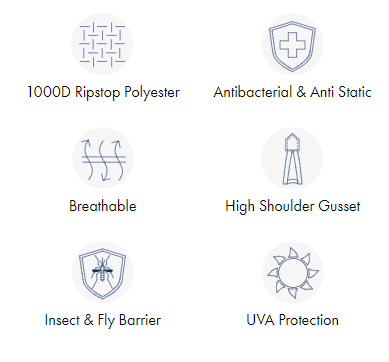 - Neck cover lined with non-static, antibacterial and breathable polyester lining over mane
