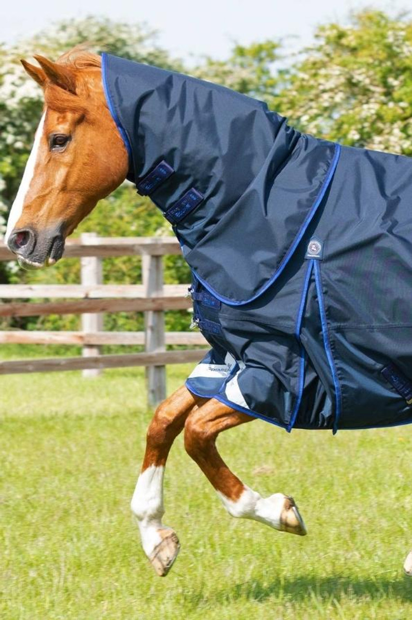 The Buster 40g features attachments for our 'Rug Liners', allowing you to customise the warmth throughout the seasons. This adaptability is a favourite among our customers. As part of the evolution of the 'Buster' range, we have incorporated an extra high shoulder gusset to enhance your horse's freedom of movement in the field. Premium branded fittings are used to ensure longevity, and the detachable classic neck cover offers additional protection against the elements. Available in Burgundy and Navy.