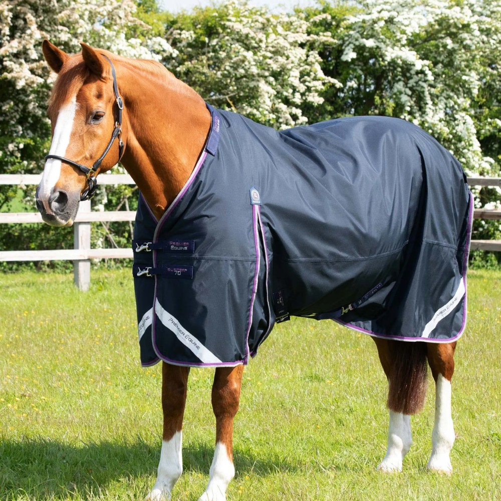 An iconic lightweight rug designed with durability and comfort in mind. This rug is engineered with a robust and breathable 840D ballistic nylon, containing 70g fill and treated with our waterproof system to keep your horse dry, comfortable, and well-regulated in temperature. This turnout rug has the added feature of attachments that enable Premier Equines 'Rug Liners' to be easily added or removed for quick adjustment throughout the seasons, allowing for customised warmth based on the weather.