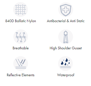 - 840D ballistic nylon outer