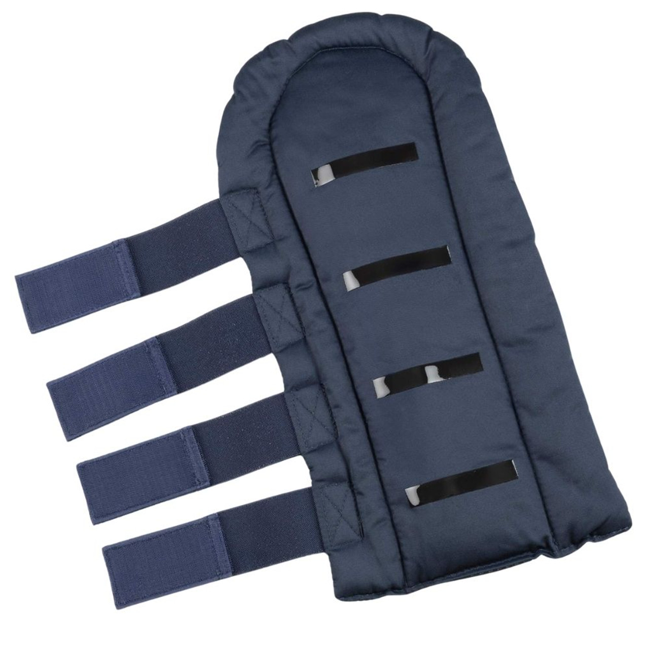 Taking inspiration from armoured protection, this tail guard incorporates six Carbon Tech microfibre leather sections along its front to provide advanced protection against abrasions and rubbing during transit. The durable cotton and cushioned 500g fill offer both protection and comfort, while the high-rise design maximizes coverage over the tail's most susceptible areas. Additionally, four anti-slip gel strips and four elasticated Velcro straps ensure secure fitting and even pressure distribution. Available in Black or Navy.