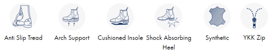 Looking for every day, affordable riding boots that don't compromise on quality? Look no further than the Volens synthetic paddock boots. Crafted from synthetic leather, these junior jodhpur boots offer sculpted ankle support, making them perfect for your daily equestrian duties on the yard and in the saddle. With the traditional look and feel of classic leather, these synthetic paddock boots have the added benefit of reduced maintenance and easy care. The front of the boot features a durable YKK zip, enhancing the fit and allowing for easy removal of the boot. Elastic side panels improve comfort and flexibility around the ankle, making these synthetic horse-riding boots perfect for everyday use. For lasting comfort, the moulded anti-slip sole has been designed to support the heel, bridge, and ball of the foot, absorbing shock and impact from walking. The boots are finished with a subtly branded pull tab, adding a final touch of style to these comfortable short-riding boots. Available in Black.