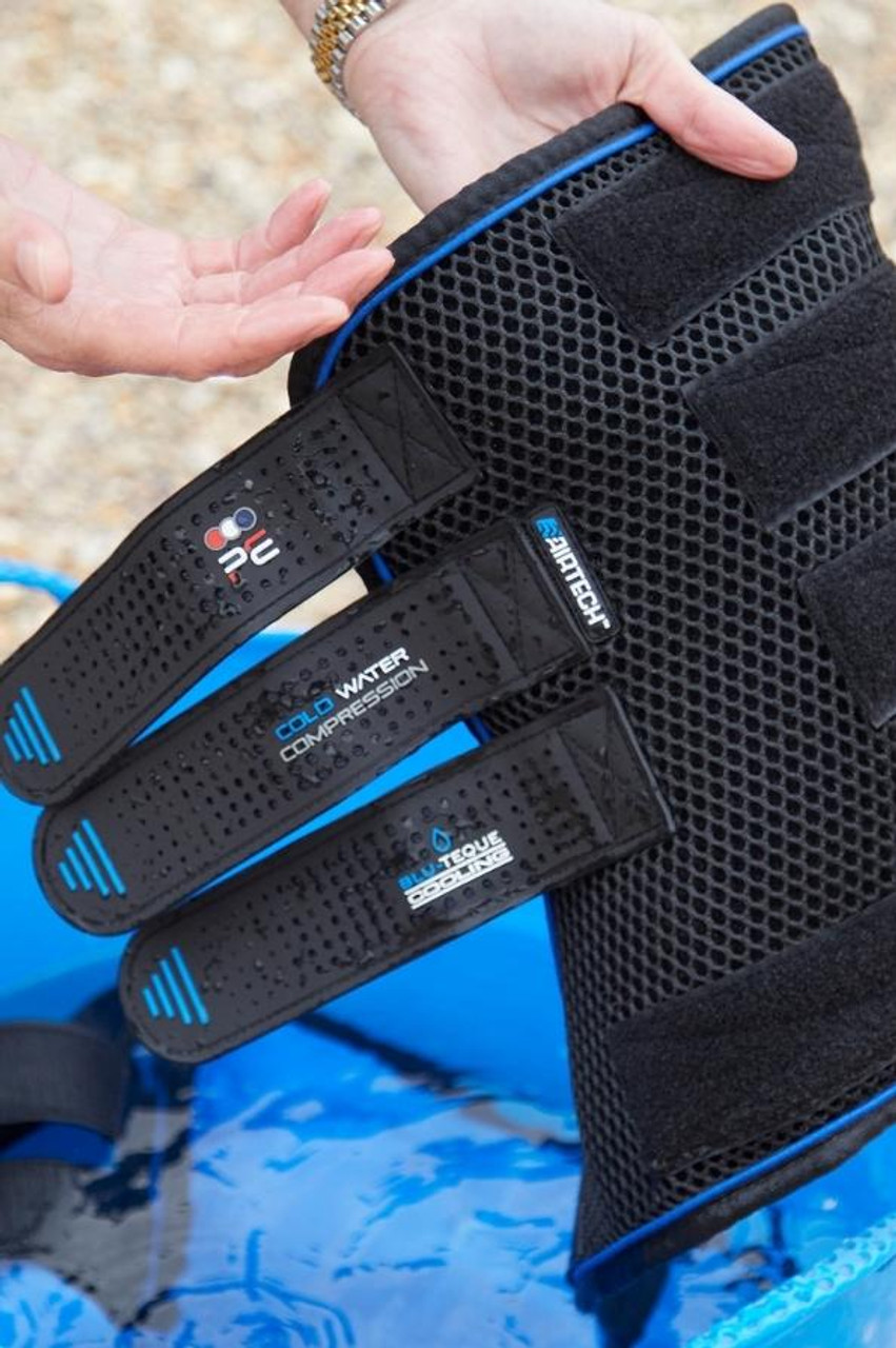 Introducing Premier Equines' revolutionary horse leg cooling solution. These boots require just 5-8 minutes of water soaking maximum of 30 minutes* with no need for ice or refrigeration for a hassle-free experience. Cutting-edge cooling technology triggers upon moisture absorption and is sustained by airflow through the 3D ducted mesh to improve your horse's recovery process after exercise.