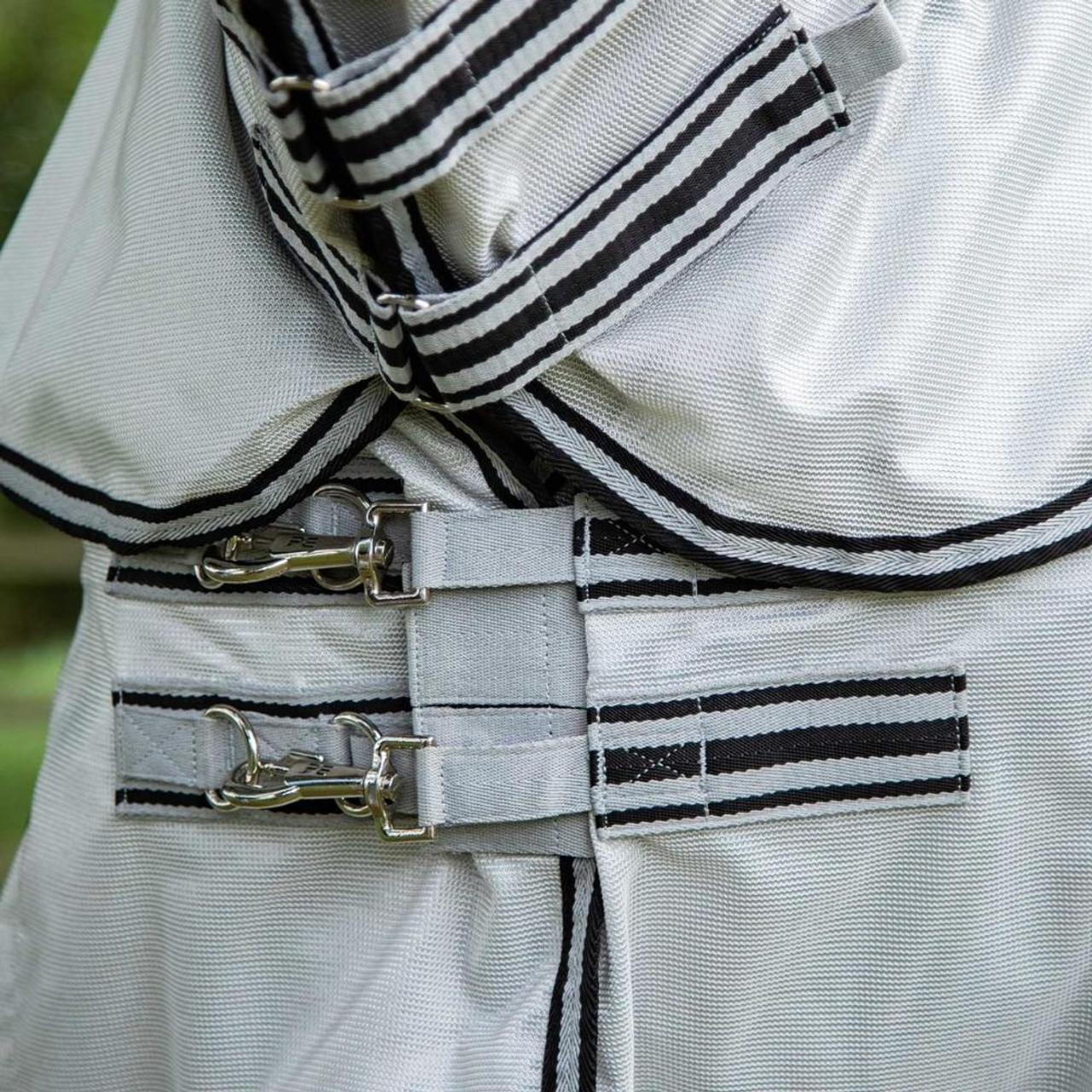 This innovative Interlocking Mesh Fly and Bug Rug, provides exceptional protection for your horse. Created using a unique soft formation, this rug resembles an armour link chain, allowing the fabric to seamlessly move with the body. The interlocking mesh design not only offers superior protection but also creates channels within the fabric. These channels enable the dispersion of heat and invite a gentle influx of air, effectively regulating temperature and preventing heat build-up during warm weather. Available in Silver.