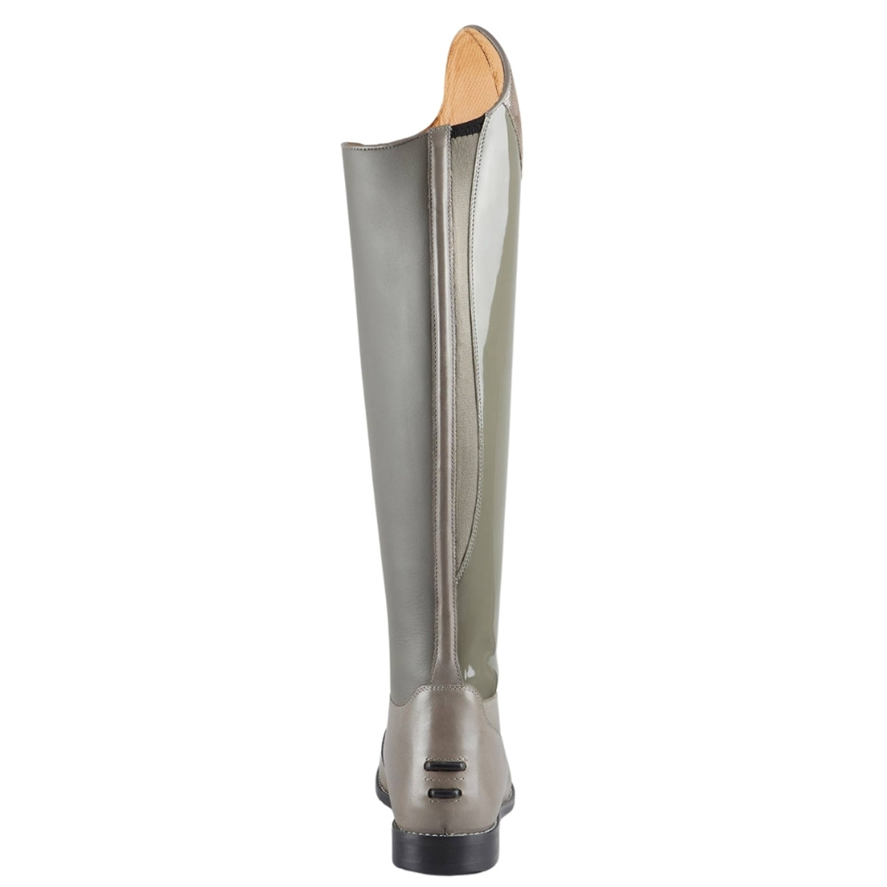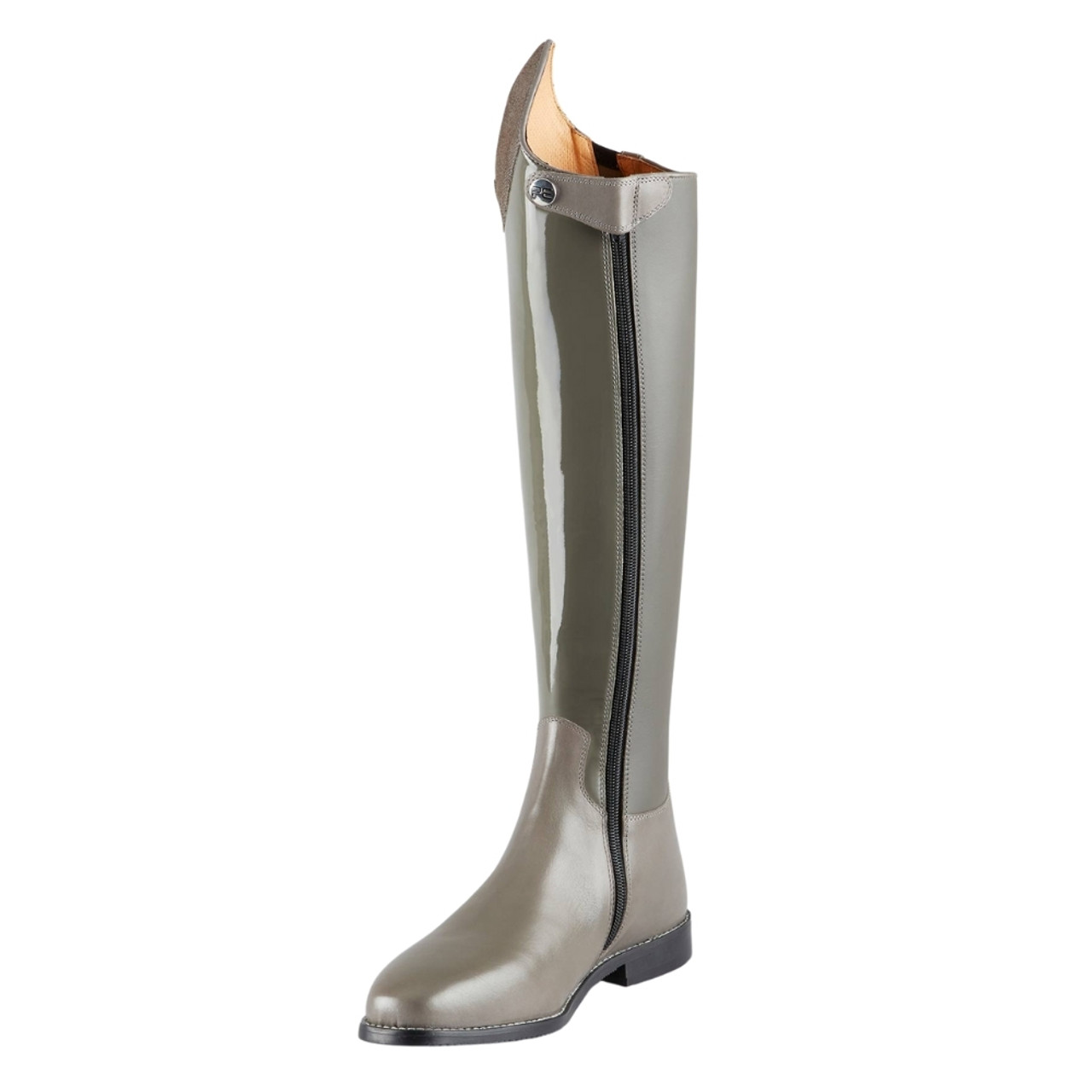 Specifically crafted for dressage enthusiasts using high-quality European and patent leather. These boots exude sophistication with their traditional knee-high length, adorned with patent leather detailing around the outer calf and a metallic accent at the knee. Whether for everyday leisure or competition use, these boots guarantee a sophisticated appearance. The Levade design ensures a close-contact, contoured fit that elongates the rider's leg and offers flexibility around the ankle.