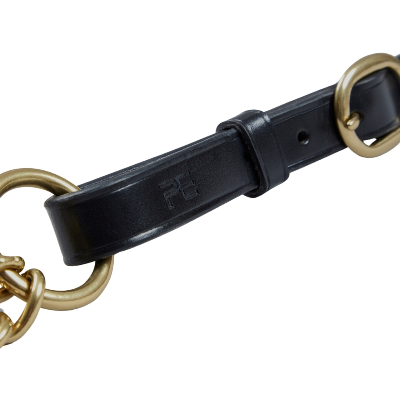 Enhance your leading experience with the Premier Equine Leather Lead Rein with Chain Coupling. This lead rein features a solid brass chain coupling that can be attached to either side of the bit, offering a distinctive and effective way to lead your horse. Perfect for in-hand showing and various lead rein activities. Explore Premier Equine's wide selection of Headcollars to complement your lead rein and complete your horse's ensemble. Available in Black and Brown.