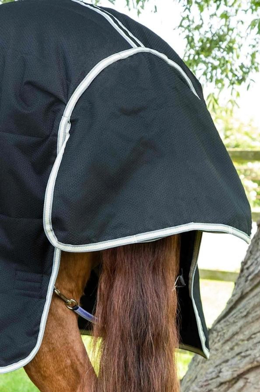 This remarkable stable rug is made from breathable 600D diamond weave polyester. This rug features a unique forward-cut neckline that incorporates two integrated wither pads strategically placed on either side of the spine. This design helps distribute pressure over a larger area, making it an excellent choice for stabled horses that suffer from soreness or have pronounced withers. The Lucanta Demi Stable Rug ensures your horse stays cosy with its 100g thermo-bonded fill and helps regulate their temperature. This classically styled and simplified stable rug does not have neck cover attachments, making it ideal for stabled horses that prefer a rug without a neck. Available in Black.