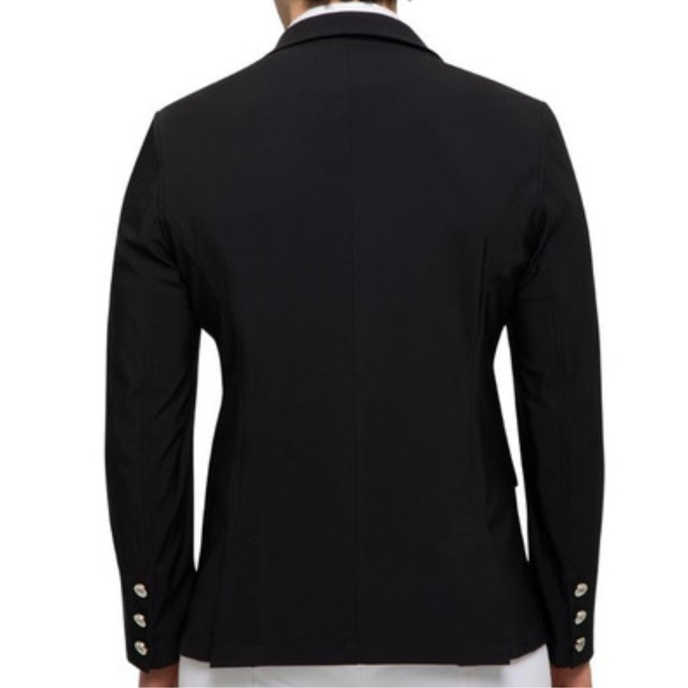The jacket features moisture-wicking properties and four-way stretch technical fabrics for unrestricted movement in and out of the saddle. It also has two vents at the back and an athletic mesh lining for maximum airflow and comfort. This eye-catching competition jacket is a staple piece for any rider's collection that can be used for a variety of disciplines. Available in Black.